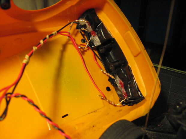 en este instructable le mostraré cómo agregar luces de descanso a tu coche rcAquí está lo que necesita:coche del rc2 LEDsdestornilladorAlgunos cablessoldadura de hierrotaladropoco de drilPaso 1: drillig los agujeros ok así que las brocas de taladro h