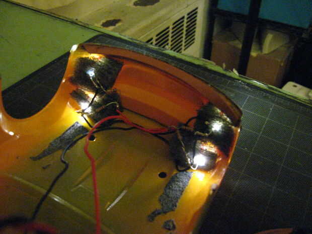 Plegado y ajuste el arnés para el cuerpo. Enchufe para arriba y ver lo que pasó. Dejar los LEDs y colocarlos en sus orificios. Tienes dos frenos y cuatro faros. Cuando usted maneja y golpe de revés esto enviará energía a las otras dos luces de freno.