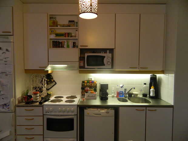 Sólo me he mudado a una nueva casa y mientras se mueve todas las cosas a sus propios lugares VI miserable cómo mira la cocina. El espacio es pequeño y el rayo es justo. También hay un pequeño rincón whitout una luz. Someting tiene que hacerse a este caos.