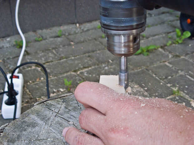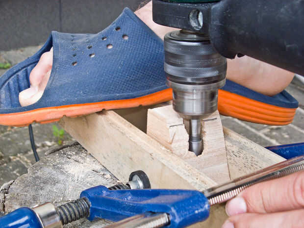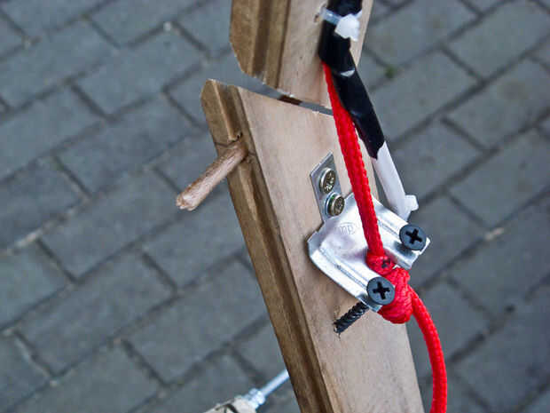 En el cuadro 6 puede ver un intento de ajuste y fijación de la lámpara con un trozo de cuerda. Eso realmente no funciona porque es extremadamente difícil de atar nudos ajustados exactamente al lado del otro, se moleste con eso. También asegúrese de que no haga de una manera tonta y perezosa como yo lo hice porque tarde o temprano usted taladrará en tu palm (pueden adivinar cómo llegó a ser tan sabio al respecto). A fijar el bloque al menos como simplemente como usar una abrazadera y dos piezas de madera y mantener sus partes del cuerpo más lejos. Si alguien sabe un buen instructivo para Banco de trabajo plegable - por favor, comparta en los comentarios.