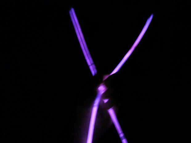 Quitar el resplandor palos del paquete. Mi resplandor palos estaban alojados en un tubo largo, fino y cartón que podría utilizar en un proyecto de futuro. Romper los palillos del resplandor y sacudirlas. Si haces esto en la oscuridad, esto hace que para algunos fresco durante la noche fotografía.