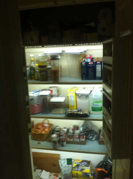 La despensa en nuestra casa era muy oscura, con una luz encima de la cabeza. Con tres personas poniendo cosas en diferentes lugares en la despensa, nos rodilla en Teddy Grahams y Mac-N-queso sin darse cuenta había cajas escondidas en las esquinas.