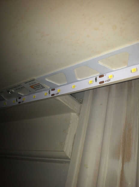 La tira del LED viene con forro adhesivo. Limpie el interior de la tira de borde del vinilo, luego la cáscara y el palillo. No tiene que ser perfecto, hay bastante potencia que no puede ver los LEDs individuales.