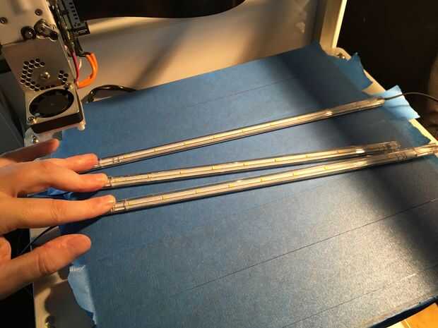 Empecé con un estándar LED iluminación kit de LED mayoristas (aquí hay un enlace para encontrarlo en Amazon). Probablemente puede utilizar cualquier número de otras marcas y modelos de iluminación, pero las especificaciones claves eran luces de longitud de 10 pulgadas que tenían un .3mm anchura y altura, e incluye el adaptador de conector cable y energía necesitado. El tamaño es importante, ya que no desea las luces para interferir con la operación de la impresora 3D.