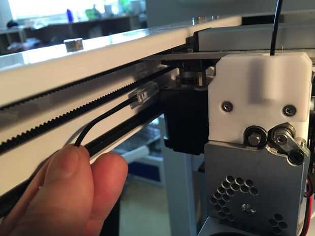 Ahora alimentar esa última luz y cable de conexión a través de la brecha entre el mecanismo de la impresora.