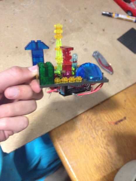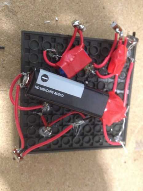 Su su elección cómo desea así soldar el LED. Heres (paralelo o serie) lo que resultó como cuando terminé soldadura. (El cableado se realizó en el lado opuesto de donde se colocaron las torres mini - lego translúcido)
