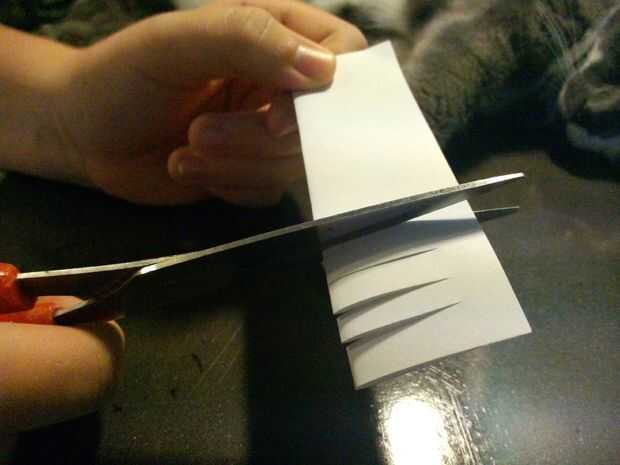 Corte hasta de la cara arrugada hasta 1/4 de una pulgada de la no arrugada lado (cuadros 1 y 2) y despliegue.