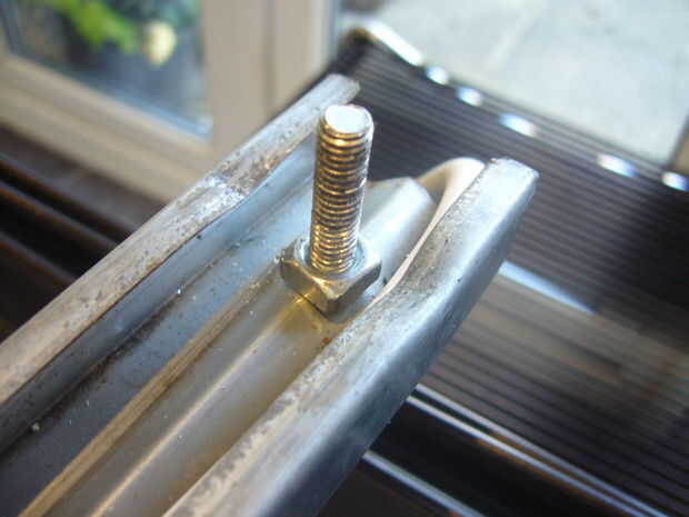 En los dos orificios restantes a cada lado de la celosía colocar los bulones restantes.