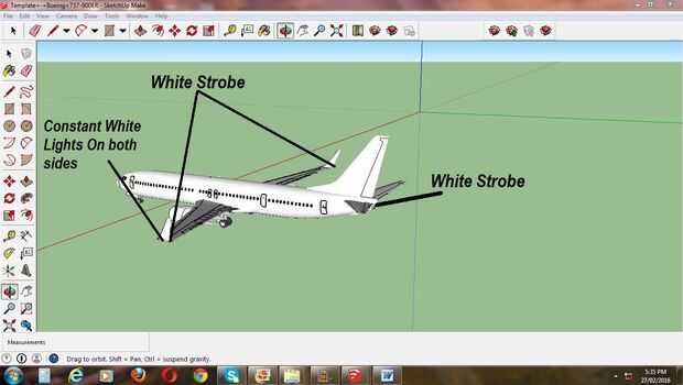 Cuando hice el BOEING 737-900 de DELTA AIRLINES con luces LED usé las posiciones arriba indicadas después de examinar las fotos y videos del avión original.
