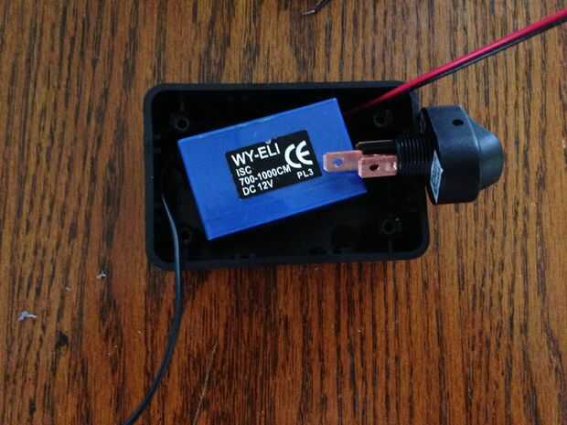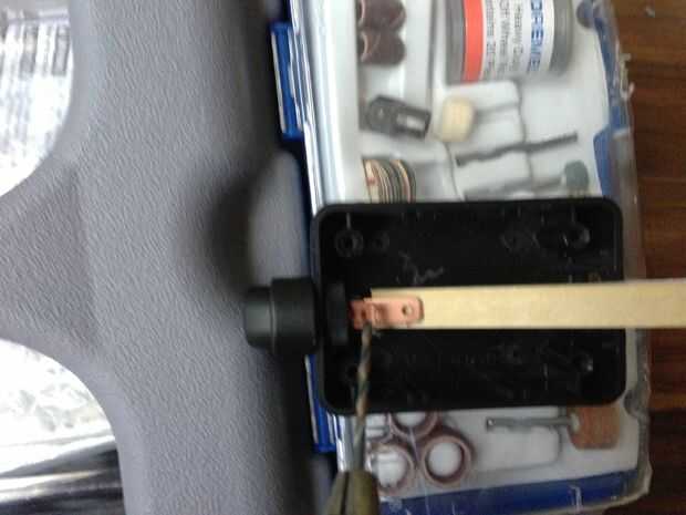 2) permite el EL alambre conector de la caja. (Esto podría has hecho en la parte superior de la caja con una abertura pequeña, pero en cambio taladré un agujero grande para encajar el conector. El cable también podría haber sido cortado y entrar por un pequeño agujero. Tú decides lo que te gusta mejor, pero tenga en cuenta que tenía la intención de llenar la caja con silicón de RTV para proteger de la intemperie, por lo que los agujeros sólo importaban mientras que fue curado de la RTV.
