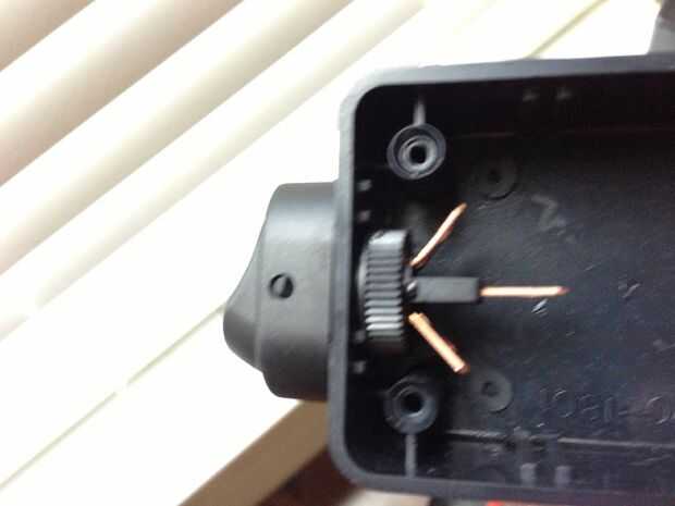 3) permitir que el interruptor para conectarse hacia el exterior de la caja, con los cables dentro. Nota: El interruptor es un poco demasiado grande para la caja con el conductor. A solucionar este problema, pero se advirtió que si no pones el interruptor lo suficientemente abajo en la caja puede que necesite utilizar la Dremel con el disco de corte para modificar la tapa de la caja del proyecto por lo que llegar a cerrar correctamente.