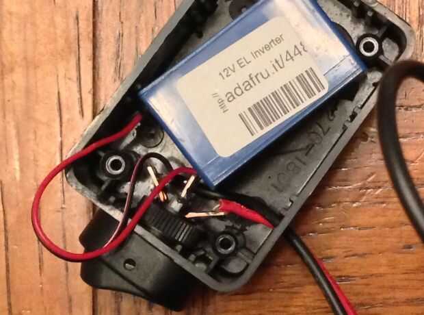 Una vez que esto es cableado, conecte el conductor (inversor) a algunos de la cinta EL y conecte las líneas de fuente de alimentación a una fuente de 12v y probarlo.
