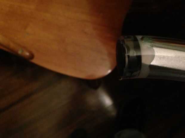 La tapa del extremo sin cables rellenando con masilla de silicona transparente y luego enchufe el 5/8". Añadir algunos silicona en la parte superior del enchufe y en el extremo de la tubería y luego colocar la tapa del mueble sobre él.