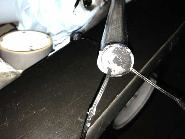 Use resina de 5 minutos a la Junta el extremo cortado de la cinta EL. Esto ayudará a asegurar que nada puede cortocircuitar el cable (salmuera, etc..) Mientras que el epoxi es hacia fuera, utilice un poco a lo largo de la parte posterior de la cinta EL para asegurar una buena conexión con la clavija.