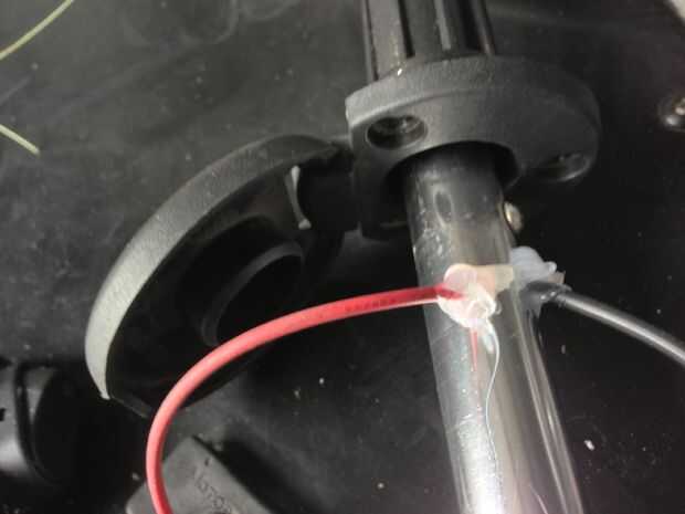 Es feo, pero funciona muy bien, porque mi luz EL barras de luz hasta cuando enciendo el interruptor de mis luces de navegación. ¡ Aunque no recomiendo este método. En el futuro I'' ll pescar cables más largo por la parte delantera del barco, debajo de "cono" de plástico y sujete al mismo lugar, bajo la navegación luces basan conector--o tal vez incluso en la consola cerca del interruptor.