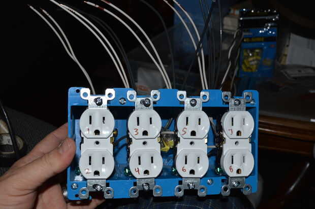 El poder proviene la parte superior derecha. La caliente va a la primera salida, y un puente de alambre se utiliza a la cuadrilla juntos todas las salidas de 4.