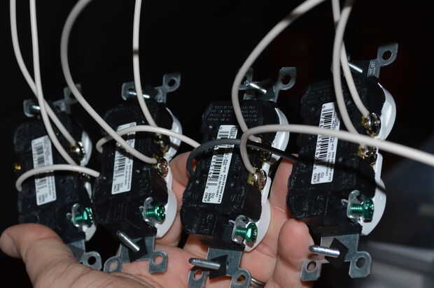 Aquí puedes ver todos los cables conectados hacia el neutro del enchufe. Tenga en cuenta que vas a tener un cable conectado a dos tornillos del lado neutro, donde como el lado caliente es todo asociado juntos.