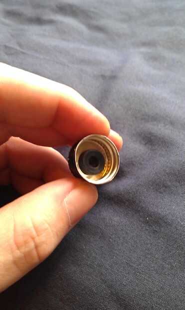 Como se puede ver el ojal no se ajusta a través del orificio he perforado por propia voluntad, que es donde las pinzas vienen en, gentley a través de empujar hasta que los bordes del agujero que ha perforado ocupan la ranura en el ojal, puede ser un poco flojo pero no debe caerse. He tratado de obtener una imagen del interior de la tapa lo mejor que pueda para mostrar el tipo de ajuste necesario.