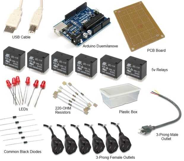 -6 relés; nominal de 5v ($4 cada en Radioshack)