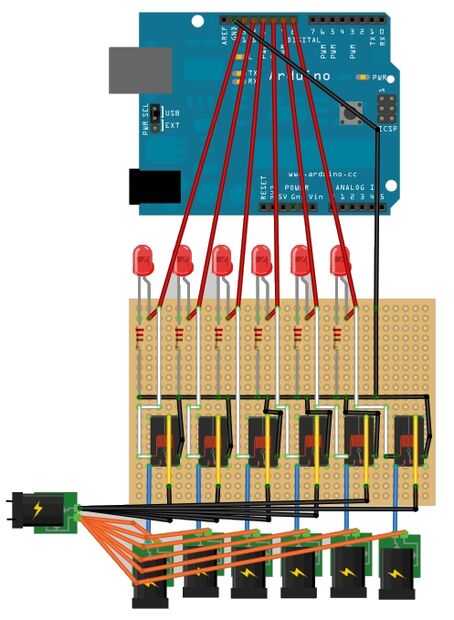 Este es el paso importante antes de iniciar su milagro de maravillas. En primer lugar, conecte todo su relé de cables a cada pin. Conectar la tierra a la fuente de alimentación principal. En otras palabras, hacer un circuito simple con los cables. Pretender el "enchufe de 3 puntas macho" es su fuente de energía, los 6 "hembra cables" son su "carga" (o bombilla), y el "cambio" es los relés. Asegúrese de que cada relé se conecta a una sola carga. Si necesitas ayuda, puedes mirar mi diagrama.