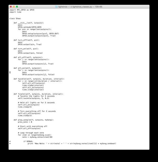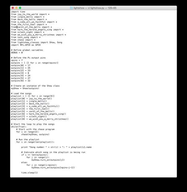 Una vez cargado en la Raspberry Pi, el programa se puede ejecutar el comando: sudo python lightshow.py