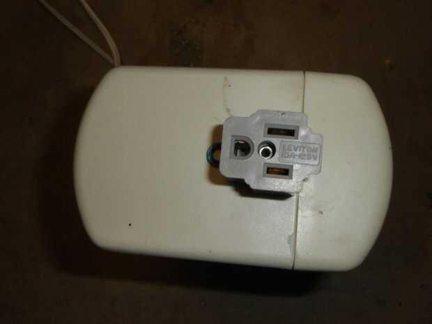 Este es uno de esos adaptadores que reducen la clavija tres frentes a un enchufe de dos clavijas. Me estaba mirando uno de ellos y notar cómo hay un orificio roscado en el centro, perfecto para montar cosas. Me dremeled las muescas en la parte superior del altavoz del caso para que los dientes podrían caber a través de (usted podría utilizar un cuchillo, pero tenga cuidado). Se lo montaron a la caja mediante un tornillo. He usado esto en lugar de una toma de corriente normal porque es pequeño, requiere corte mínimo a instalar y es baratos (alrededor de 20 centavos de dólar).