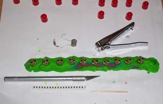 He utilizado 20 LEDs de cada rojo, verde, azul, amarillo y blanco. Se pueden comprar en línea.