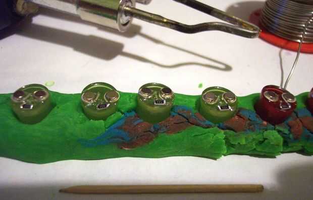 Ahora es el momento para la soldadura de las resistencias. Esto tiene un toque delicado. Asegúrese de limpiar a menudo la punta de la pistola de soldar y tocar ligeramente los puntos que desea soldar con soldadura y pistola de soldar precalentado. Si la soldadura no "toma" la primera vez, espere hasta que el frío los cables e inténtelo de nuevo. Asegúrese de no tocar los imanes con la pistola de soldar. Los imanes se descomponen si se exponen a un calor excesivo. Si usted accidentalmente de la soldadura de un puente sobre dos cables, utilizar el palillo para empujar aparte la soldadura como se recaliente.