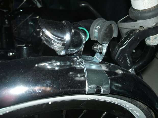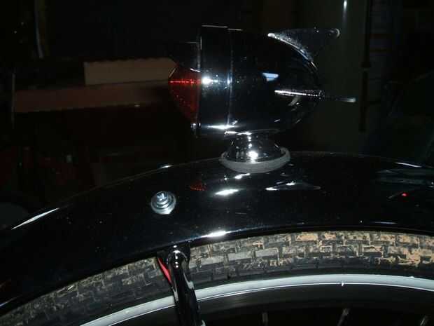 Tendrás que montar las lámparas. Esto variará para diferentes trikes, pero incluí algunas imágenes para dar la idea general. Usé conectores de engarce para conectar las luces a los cables. Finalmente voy a cubrir los plegadores en plástico termo-retráctil.