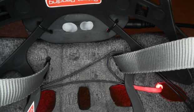 Cuando esté satisfecho con la colocación del LED envuelva los cables de LED todo el fleje plástico dentro del casco para mantener el LED en su lugar. Asegúrese de que los cables estén bien aplanado hacia abajo y que el casco es todavía cómodo de las mercancías.