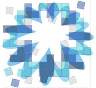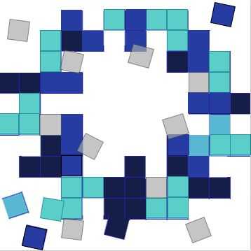 El primer paso fue averiguar el diseño de los píxeles. En Photoshop, había importado una imagen del logo y colocando cuadrados tamaño idénticamente en la parte superior en una nueva capa de manera que el color por debajo. Utiliza un azul más oscuro y un verde azulado medio así como algunos al azar casillas blancas y tenían algunas piezas sueltas flotando de los lados que he decidido representan pedacitos de polen y ayudar a que la composición entera un poco menos rígida.