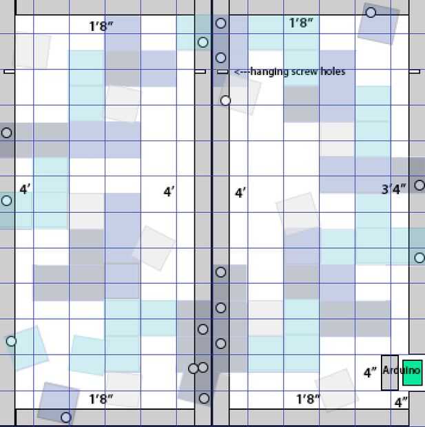 Utilizando una red, me di cuenta de donde el 1 x 2" enmarcando placas iría y qué medidas sería necesario cortar para crear un forro para mi dos 2 x 4' planos tableros. (La única razón por todo esto se corta en medio y no un sólido 4 x 4' es debido a limitaciones con el transporte en mi vehículo!) También marqué donde tendría que perforar algunos amplia, poco profunda para los tornillos para que no meter a pasado mi 1x2s en la espalda, suponiendo que cada píxel se celebrará con 2 tornillos, uno en la parte superior izquierda y en la parte inferior derecha de la Plaza. En el centro, donde no hay el 1x2s codigo postal debajo de las tablas planas grandes, no necesita estos agujeros, porque ya hay un espacio entre el tablero y la pared.
