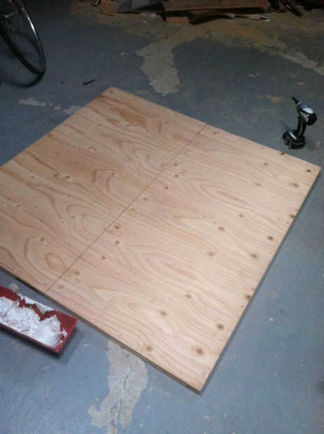 El panel de apoyo del edificio era bastante sencillo. Después de marcar y cortar el 1x2s a tamaño, martilló algunos clavos de tablero de panel a través de las hojas planas frontales para pegarlas. El hecho de que mi grupo era de dos piezas realmente ayudó a puesto que las tablas no eran la mejor calidad y tipo de deformada, por lo que la estructura en la parte posterior ayudó a tirar en una superficie plana.