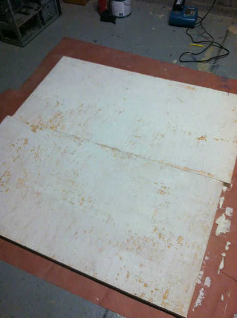 Quería que mi panel de respaldo para que coincida con la pared en la oficina donde colgaría la pieza, así que apliqué cierta textura drywall a todo antes de pintar sobre ella en un grisáceo semi-gloss.