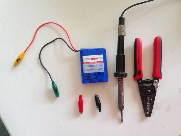 3. soldador (opcional, para sujetar pinzas a la batería))