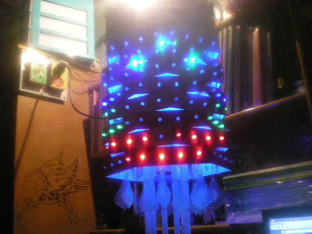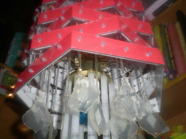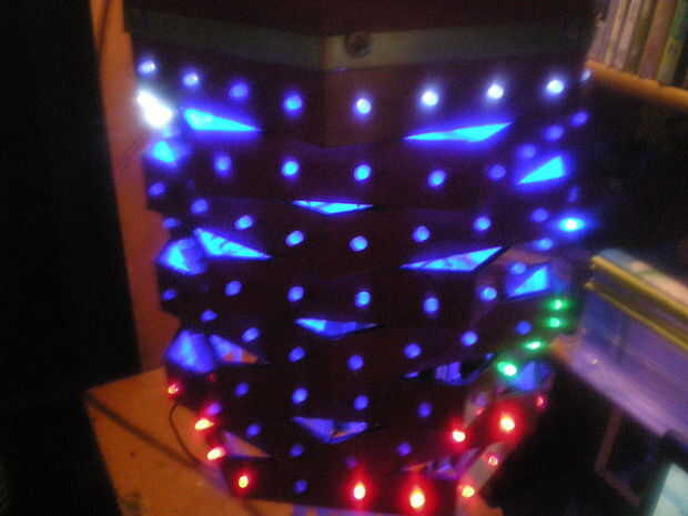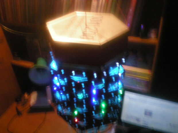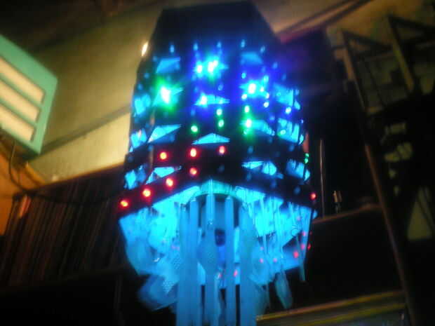 Construido para un telón de fondo de etapa este proyecto cuenta con algunas formas hexagonales de 3/4" la pipa de PEX, similar a un aro del LED hula, algunos 12 voltios RGB LED tira y un NLED 30 canal alto LED controlador de corriente. Los hexágonos