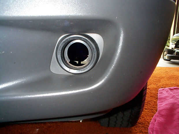 El ojal se ajusta en el agujero y da soporte para la luz. Es de plástico suave y tendrá una ranura entre el interior y el exterior piezas. Asegúrese de que las juntas de ranura en el orificio que sólo en el parachoques. Una vez instalada, la unidad debe sostener firmemente al plástico parachoques. El ensamblaje de la lámpara se ajusta a la taza de la boquilla. El plástico suave tiene la luz con firmeza, pero todavía puede eliminar todo sin necesidad de herramientas.