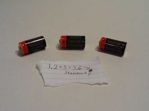 Sí hay matemática en esta parte.  Las pilas de mis luces son 1.2v así que aquí está el problema lo que hice: