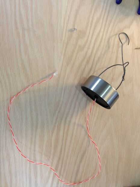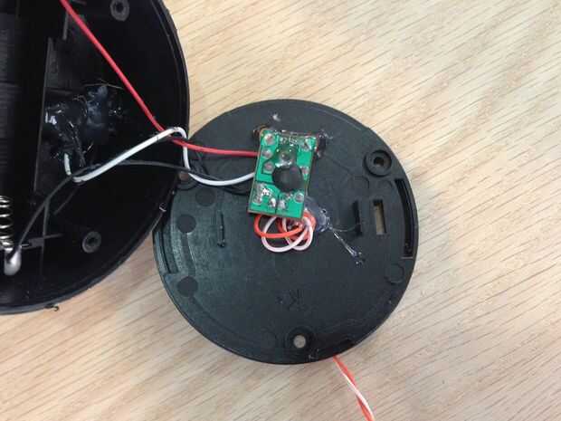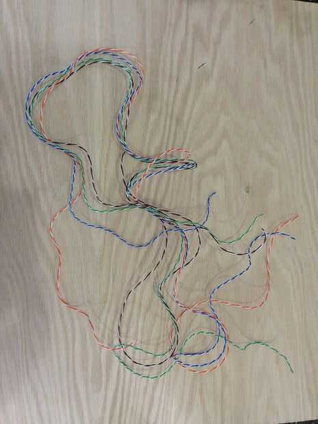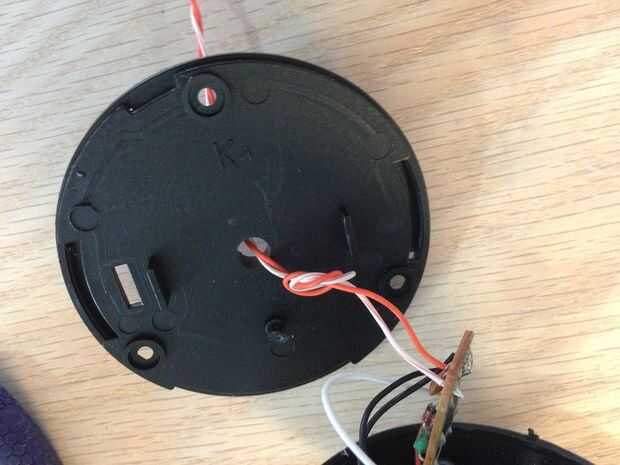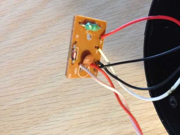 El par trenzado para el PCB de la soldadura. Un nudo en el cable para que la bola se colgará finalmente poner tensión en el saber y no en las conexiones de soldadura. Esto se llama alivio de tensión. Básicamente permite dos pulgadas de alambre entre el PCB y el nudo. No estire el saber.