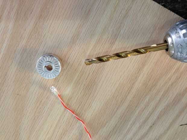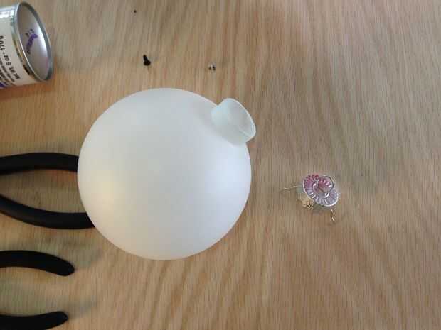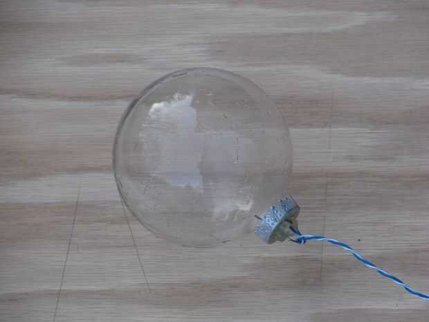 Las bolas de cristal vienen con una tapa de plata débil. Agrande el orificio en la parte superior con un taladro de 1/4" bits. Trabajar con cuidado porque es fácil destruir accidentalmente la tapa. El agujero debe ser lo suficientemente grande para el LED ir a través de él.