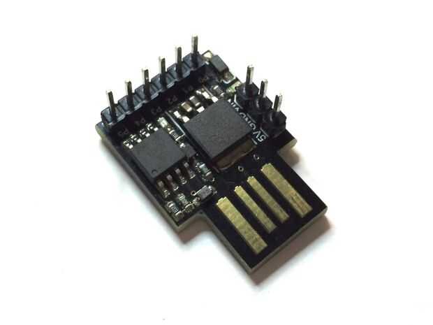 Para este Instructable necesitamos una tira de LED de WS2812, también conocido como NeoPixel y cualquier MCU que puede programarse a través de Arduino. Yo uso Digispark, es un microcontrolador pequeño muy bonito basado en ATtiny85. Tiene un gestor de arranque especial llamado micronúcleo que proporciona la posibilidad de subir un programa directamente a través de USB. Esto significa que si tienes Junta de Digispark que pueden empezar a utilizar sin cualquier otro hardware, sólo tienes que seguir las instrucciones en http://digistump.com/wiki/digispark