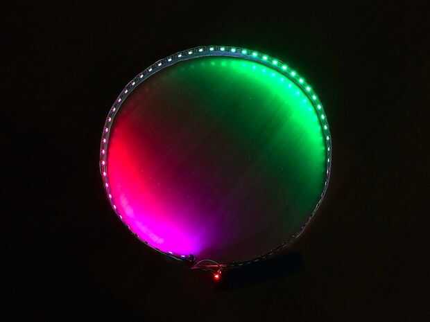 Por ejemplo, hice un anillo de metal para uno de mis proyectos y había pegado a una de las tiras a él. Ahora es una luz de decoración agradable que usted puede poner en una pared o un techo. Poner una tira cerca de un cristal de la ventana se traduce en un reflejo agradable (como se puede ver en una foto).