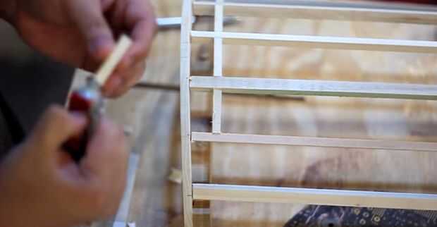 Entre cada vertical, corte horizontales trapezoides y pegadas en su lugar.
