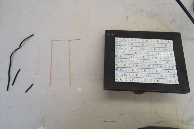 Esto aseguraría que tenía un +,-, -, + patrón al soldar sobre mis cables. La manera que he apoyado a los LEDs una colocación al azar de los contactos positivos y negativos.