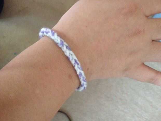 Puede tejer sus extremos al cable con una aguja apropiada, o hacer un brazalete como el mío atando firmemente los extremos junto con un fuerte nudo cuadrado. Un toque de pegamento mantendrá el nudo cerrado. Entonces sólo recorte los extremos y mostrar su nueva habilidad! Si no desea mostrar, un cordón en un extremo, empujando para arriba en la cuerda de lucet un poco la secuencia, haga el nudo como un nudo de bien como usted puede, luego deslizar el talón hacia atrás sobre el nudo. Muy lindo. (No foto, no hice mis cuentas. Yo uso un grano de madera aunque.)