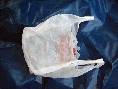 -una bolsa de plástico (prefiere actualizar a un bolso de colgar más agradable, pero trato de reutilizar las bolsas de plástico lo más posibles)