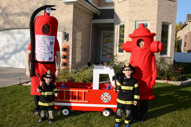 Todo el mundo amaba nuestro traje de la familia y parada para tomar fotos de nosotros durante nuestra caminata del pueblo de Halloween hoy. Había unos perros confundidos preguntando por qué la boca de incendios había piernas y estaba en movimiento. Afortunadamente evité cualquier "incidentes mayores" con los perros.