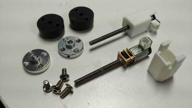 Elegimos el N20 tornillo motor y caucho mat en vez de rueda. Puesto que se desmontan los motores tornillo de máquina rotos de la mano, falta de la correa de conexión, utilizamos impresora 3D para hacer dos mangas, así pueden colocarse de los motores.