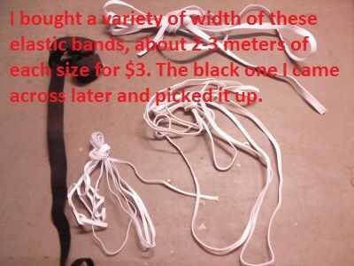 Las bandas elásticas bajo costo $5. En un apuro, tengo varios anchos, no estoy seguro exactamente cómo correa este nuevo artilugio en mi zapato. El color blanco estaba fácilmente disponible. Más tarde encontró negro y prefirió su aspecto elegante. Ahora, normalmente no trabajo con telas pero esto me pareció una buena opción para el tipo de dispositivo. Zapatillas usan cordones y cintas elásticas se utilizan en una variedad de aparatos deportivos.
