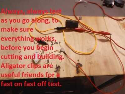 Siempre Tómese unos minutos para poner a prueba sus ideas antes de usar su sierra, taladro, etc.. Incluso si estás 100% seguro, sigue siendo una buena idea porque surgen cosas. Buenas herramientas para trabajos de electrónica son cables con pinzas en ambos extremos. Significa un rápido encendido y rápido prueba. Aquí la batería suministra energía suficiente para la alarma, por lo que el volumen estaba en un buen nivel. No fue demasiado fuerte ni demasiado suave.